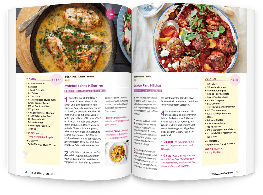 Bezstresowe odchudzanie dla mam jest takie proste! Wystarczy ugotować raz, a otrzymasz dwa dania! Dzięki pomysłowym pomysłom 2 w 1, aby cieszyć się razem z rodziną: dobre rzeczy z mniejszą ilością węglowodanów dla Ciebie i smaczne rzeczy z nieco większą ilością węglowodanów dla Twoich bliskich.