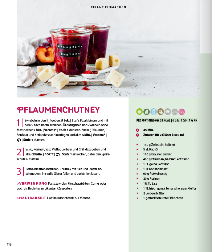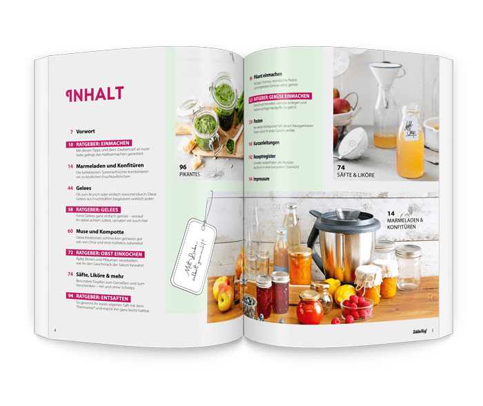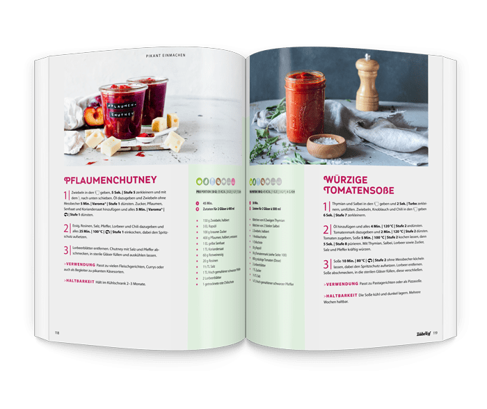 Najlepsza rzecz w tych smakołykach w słoiku: wiesz, co w nich jest i robisz coś dobrego dla siebie. Niezależnie od tego, czy są to zioła z parapetu, czy pomidory z podniesionej grządki - zawsze znajdziesz tutaj dobry pomysł na szybkie wyczarowanie czegoś pysznego! The Thermomix zawsze zapewnia doskonałe rezultaty, które smakują tak dobrze, jakby nasza babcia wróciła do kuchni.
