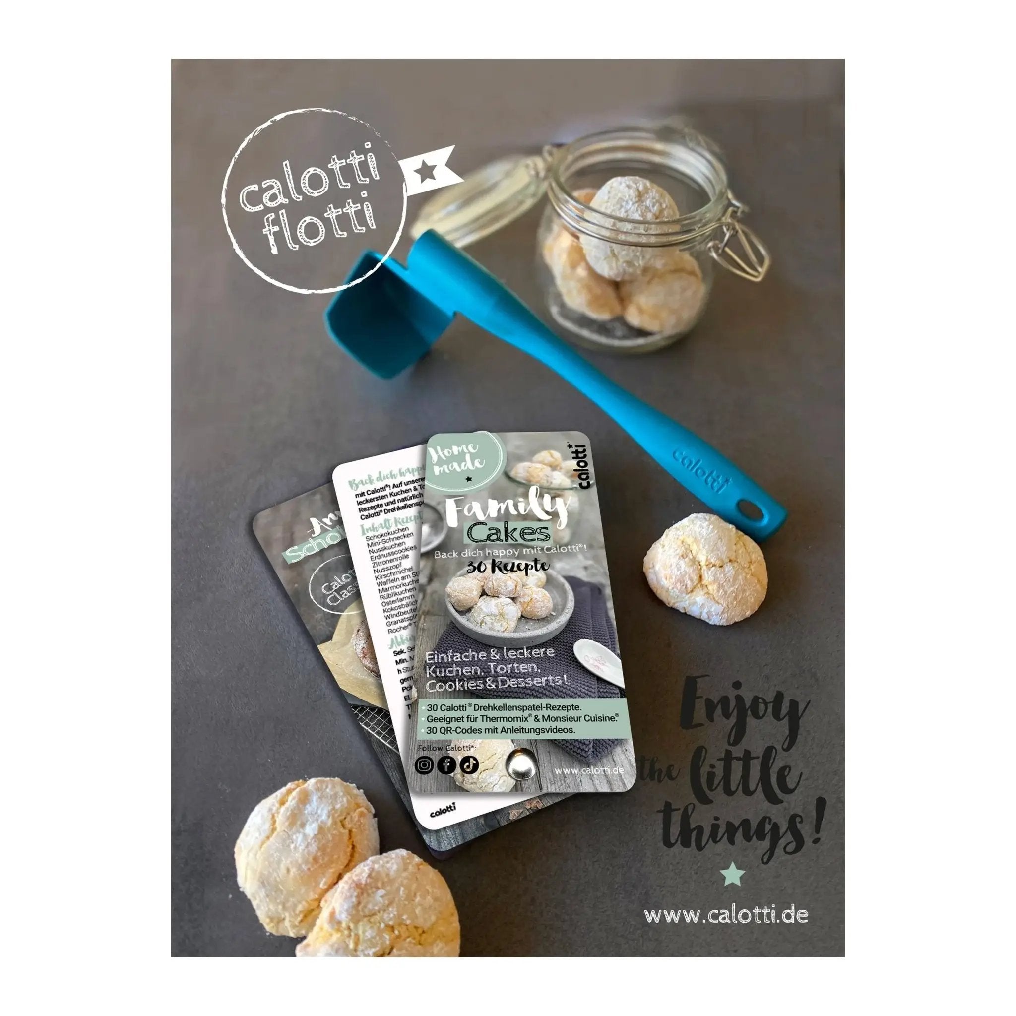 “Family Cakes – Back dich happy mit Calotti” ist dein Rezeptfächer mit einem vielfältigen Angebot an modernen Rezepten, sowie südbadischer Backtradition als auch Neuinterpretationen wie dem Schwarzwälder im Glas. Ob Osterlamm, Erdnusscookies zu Halloween oder einer Linzertorte zu Weihnachten, hier ist für jeden Anlass und für jeden Geschmack etwas dabei.